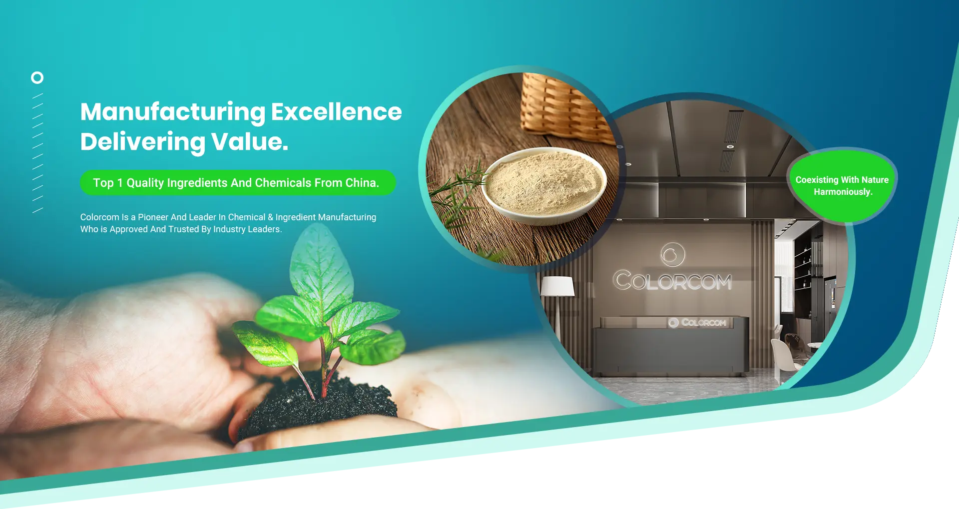 همزیستی هماهنگ با طبیعت: یک زمین، یک خانواده، یک آینده. تمام سایتهای تولیدی Colorcom در پارک شیمیایی سطح ایالت واقع شدهاند و همه کارخانههای ما مجهز به تجهیزات پیشرفته هستند که همگی دارای گواهینامه بینالمللی هستند. این امر Colorcom را قادر می سازد تا به طور مداوم محصولاتی را برای مشتریان جهانی خود تولید کند.
